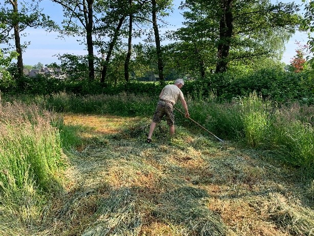 Met regelmaat moet er worden gehooid op het terrein van de volkstuinvereniging. Dit wordt gedaan volgens het principe van het Ecologisch maaien. Het uitgangspunt van ecologisch maaien is dat er rekening wordt gehouden met flora en fauna en de eigenschappen van het terrein. Het gras en de overige planten worden niet gelijktijdig afgemaaid. Dit verhoogt de biodiversiteit en geeft het terrein een gevarieerde aanblik.